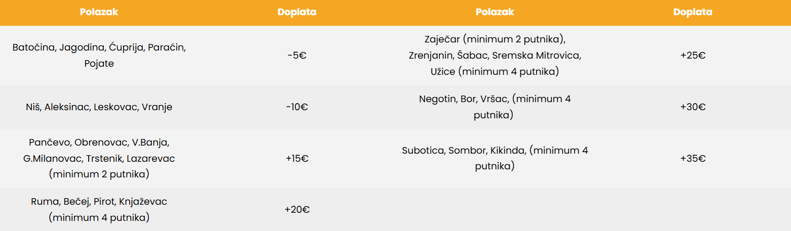 * Garantovan polazak iz Novog Sada, Kragujevca, Čačka, Kraljeva i Kruševca bez doplate.